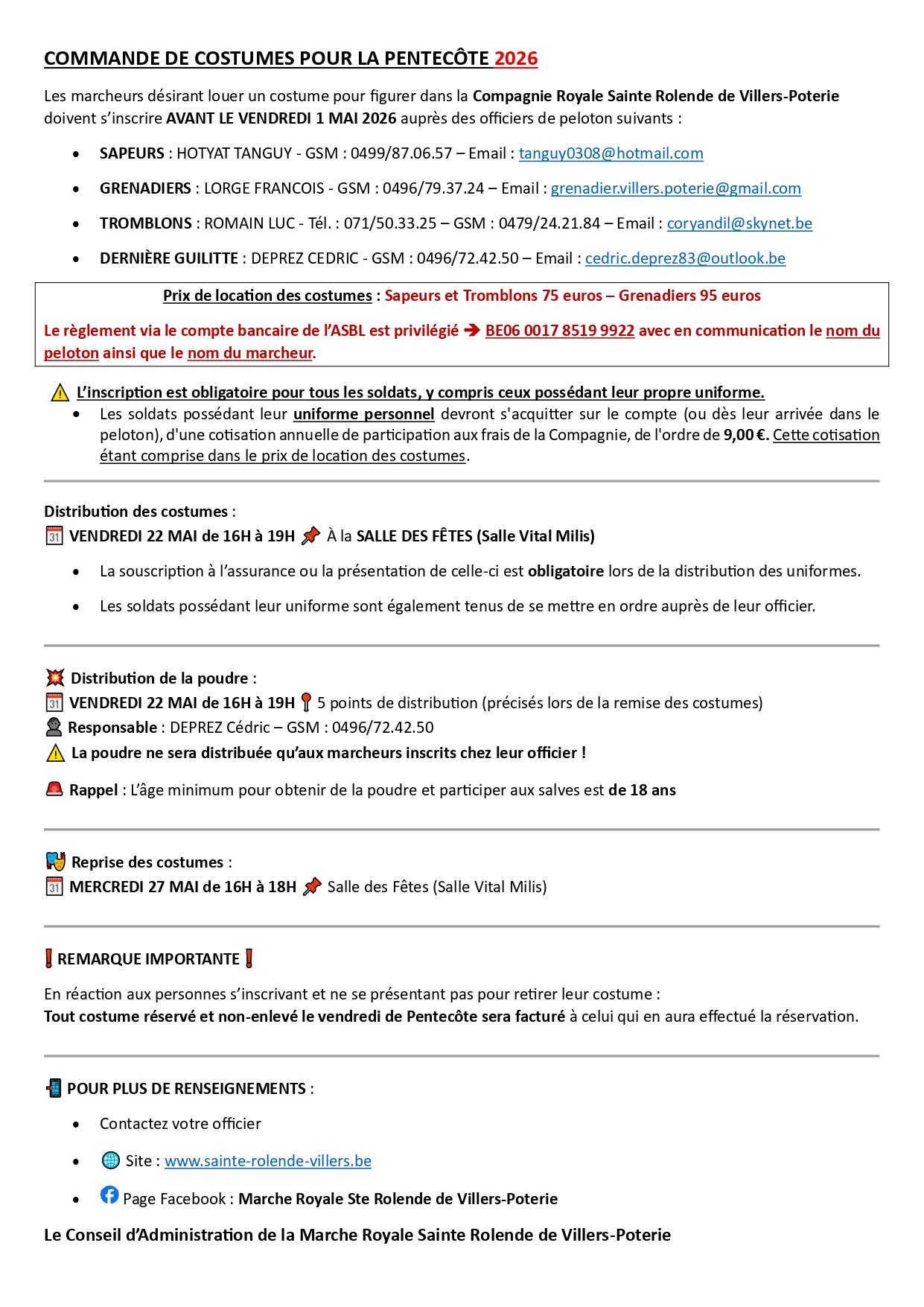 Bienvenue sur le site de la Marche Royale Sainte Rolende de Villers-Poterie.